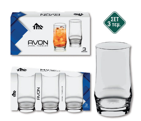 Ποτήρια Γυάλινα Σετ 3τμχ Διάφανα 280ml (Avon Tumbler) TnS 03-950-3530