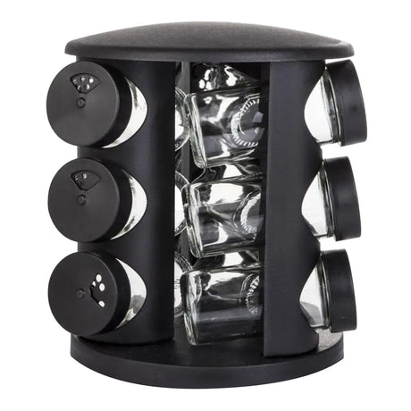 Θήκες Μπαχαρικών Γυάλινες 9Τεμ σε Περιστρεφόμενη Βάση Μαύρη TnS 03-950-4269
