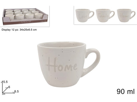 Φλυτζάνι Καφέ 90ml Κεραμικό Κρέμ Χρώμα Love/Family/Home