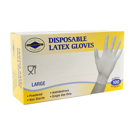 Γάντια Μιας Χρήσης Λάτεξ (Large) Με Πούδρα σε Λευκό Χρώμα 100τμχ (Θαλασσινός)