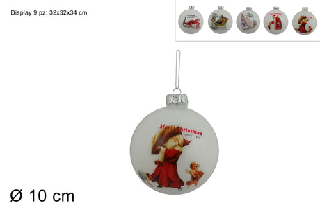 Μπάλα Λευκή 10cm Γυάλινη Χριστουγεννιάτικη με Χριστουγεννιάτικες Φιγούρες