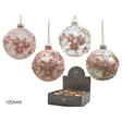 Μπάλα Ροζ 10cm Γυάλινη με Υφασμάτινο Λουλούδι Χριστουγεννιάτικη General Trade
