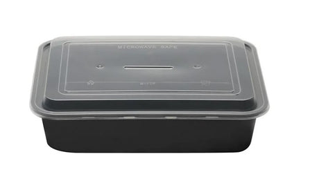 Pet Σκεύος Τροφίμων 1τμχ. Παραλληλόγραμμο Πλαστικό Μαύρο +Καπάκι 1350ml