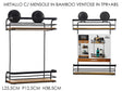 Ράφι Διώροφο Μπάνιου Μεταλλικό Μαύρο με Βεντούζες & Βάση Bamboo 25.5x12.5x38.5cm