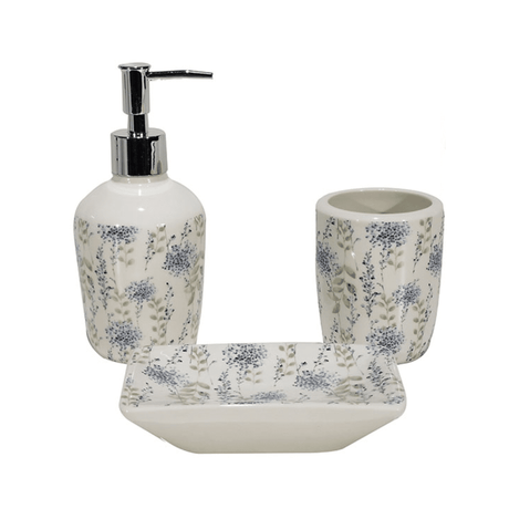 Σετ Αξεσουάρ Μπάνιου 3τμχ. Κεραμικό Γαλάζιο με Λουλούδια Art.706130A General Trade