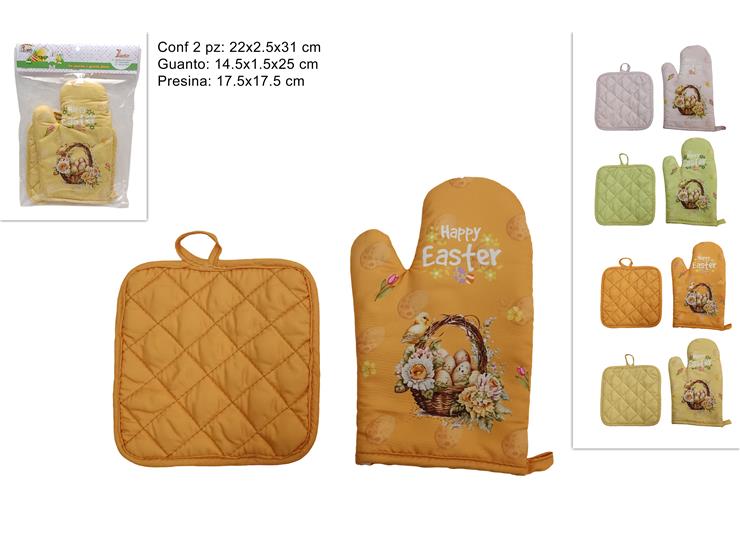 Σετ Γάντι & Πιάστρα Κουζίνας Υφαμάτινο Πασχαλινό Σχέδιο