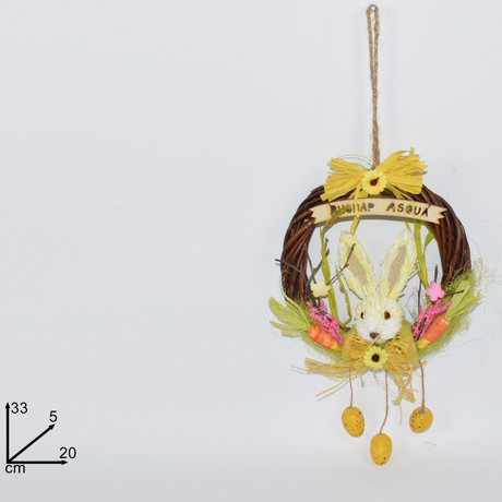 Στεφάνι Διακοσμητικό με Κουνέλι 33x20x5cm Art.MI006917 Welkhome