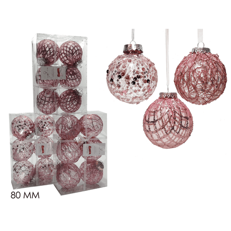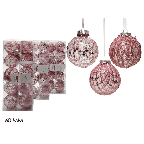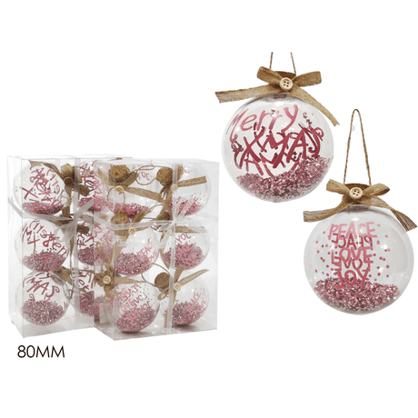 Μπάλα Ροζ 8cm 6τμχ. Πλαστικές Διάφανες Με Γκλίτερ Χριστουγεννιάτικες General Trade