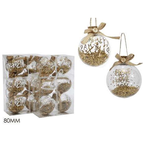 Μπάλα Διάφανη 8cm 6τμχ. Πλαστικές Με Χρυσόσκονη Χριστουγεννιάτικες General Trade