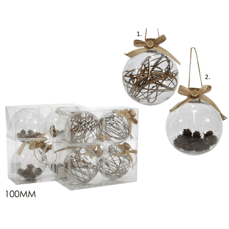 Μπάλα Διάφανη 10cm 4τμχ. Γυάλινες με Διακοσμητικά Ξύλα Χριστουγεννιάτικες General Trade
