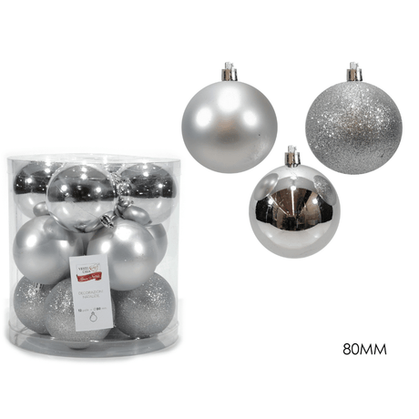 Μπάλα Ασημί 8cm 12τμχ. Πλαστικές Χριστουγεννιάτικες General Trade