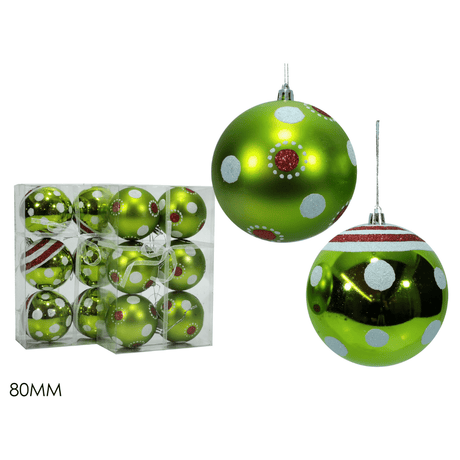 Μπάλα Πράσινη 6cm 10τμχ. Πλαστική 3 σχέδια Χριστουγεννιάτικη Welkhome