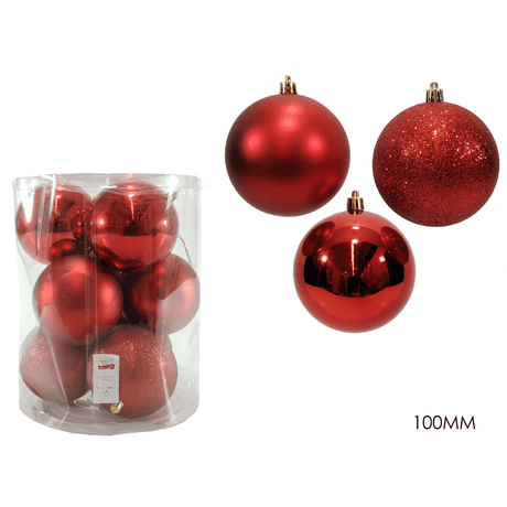 Μπάλα Χριστουγεννιάτικη 12cm Σετ 4/τεμ Κόκκινη Πλαστική
