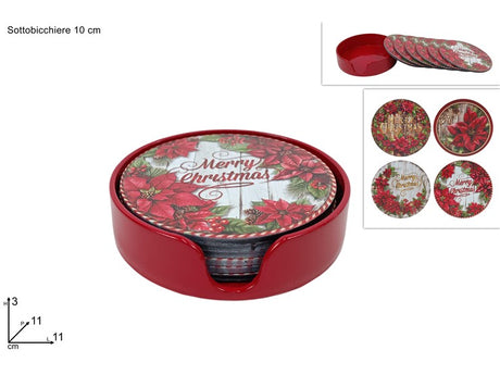 Χριστουγεννιάτικο Σουβέρ Σετ 8/τεμ με Πλαστική Κόκκινη Βάση