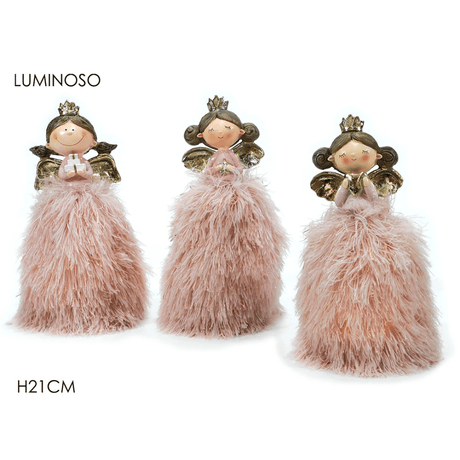 Αγγελάκι Φωτιζόμενο Κεραμικό Ρόζ 21cm