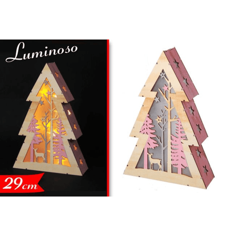 Δέντρο Ξύλινο 29cm Χριστουγεννιάτικο Διακοσμητικό Φωτιζόμενο Μπαταρίας