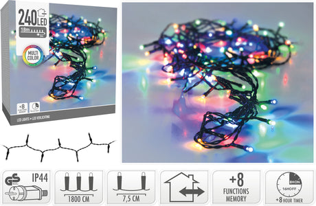 240 Led Χριστουγεννιάτικα Φωτάκια Πολύχρωμο Φώς Πράσινο Καλώδιο 18m με Πρόγραμμα