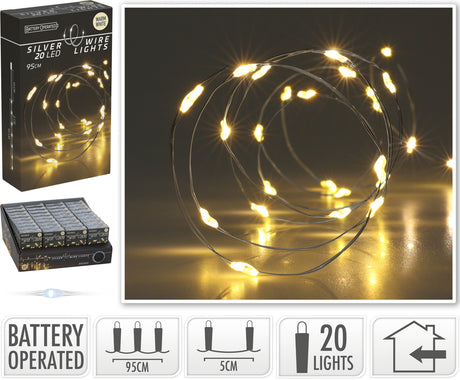 20 Led Χριστουγεννιάτικα Φωτάκια Μπαταρίας Λευκό Φώς Copper Καλώδιο Σύρμα 95cm