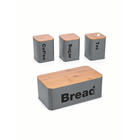 Ψωμιέρα Μεταλλική με Ξύλινο Καπάκι (+3 δοχεία) σε 3 Χρώματα Sidirela E-4209