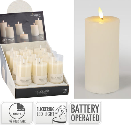 Κερί Κορμός Led Μπαταρίας 7.5x10cm Λευκό