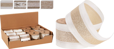 Κορδέλα Χριστουγεννιάτικη Διακοσμητική 6,3x270cm Χρώμα Λευκό - Χρυσό Welkhome