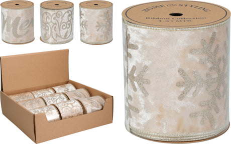 Κορδέλα Χριστουγεννιάτικη Υφασμάτινη με Χιονονυφάδες Σαμπανιζέ 450x10cm