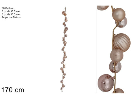 Διακοσμητική Γιρλάντα με 36 Χριστουγεννιάτικες Μπάλες Ρόζ 170cm
