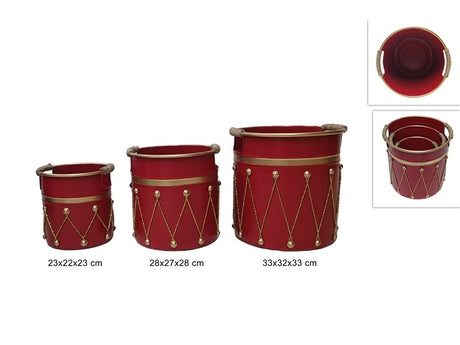 Καλάθια σε Σχήμα Τύμπανο Σετ 3/τεμ Μεταλλικά Κόκκινα 23/28/33cm