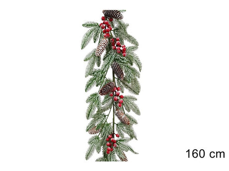 Γιρλάντα Χριστουγεννιάτικη Plastic Πράσινη Χιονισμένη με Κόκκινα Γκί & Κουκουνάρια 160cm
