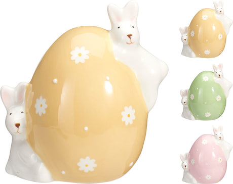 Αυγό Κεραμικό Διακοσμητικό με Λαγουδάκια 10cm σε 3 Χρώματα