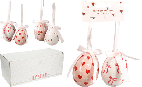 Αυγά Διακοσμητικά Σετ 2/τεμ με Καρδιές και Φιογκάκια 10cm