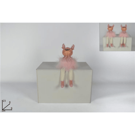 Κούκλα Καθιστή Κεραμική με Ρόζ Πουπουλένιο Φόρεμα 23cm Welkhome