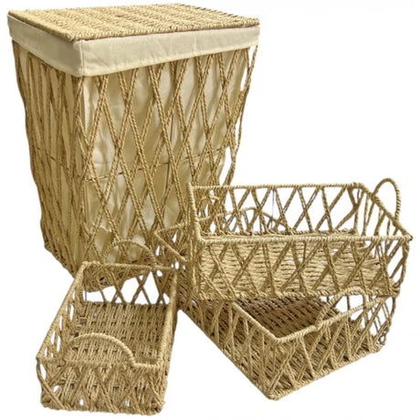Σετ Καλάθι Απλύτων με 3 Καλάθια Τακτοποίησης Πλεκτά από Μέταλλο και Σχοινί Μπεζ 36x26,5x47cm TNS