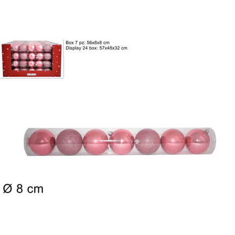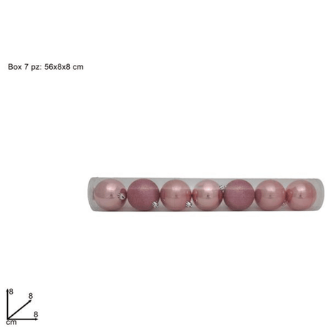 Μπάλα Ροζ 8cm 7τμχ. Πλαστική Χριστουγεννιάτικη Welkhome