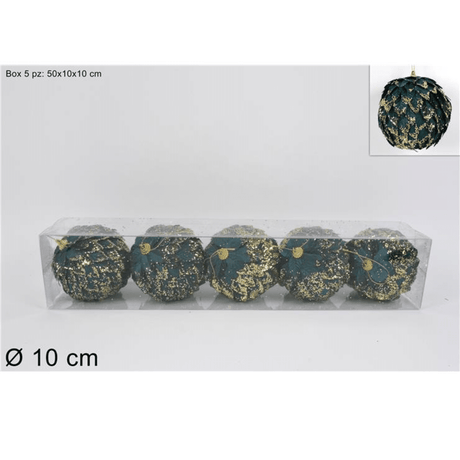 Μπάλα Πράσινη 10cm 5τμχ. Πλαστική με Χρυσό Γκλίτερ Χριστουγεννιάτικη Welkhome