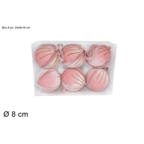 Μπάλα Ροζ 8cm 6τμχ. Βελουτέ Χριστουγεννιάτικη Welkhome
