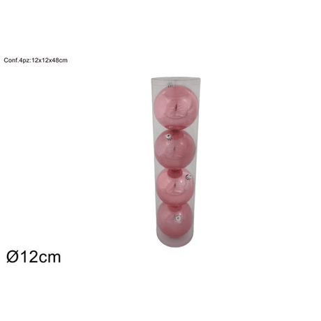 Μπάλα Ρόζ 12cm 4τμχ. Πλαστική Χριστουγεννιάτικη Welkhome