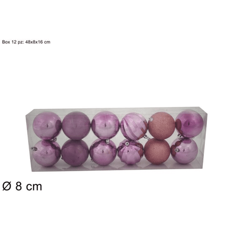 Μπάλα Ρόζ / Μώβ 6cm 12τμχ. Πλαστική Χριστουγεννιάτικη Welkhome