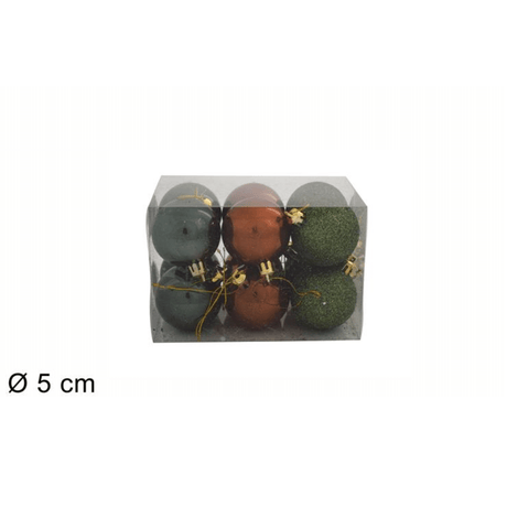 Μπάλα Πράσινο/Μπρονζέ 5cm 12τμχ. Πλαστικές Χριστουγεννιάτικες AV5012 Welkhome