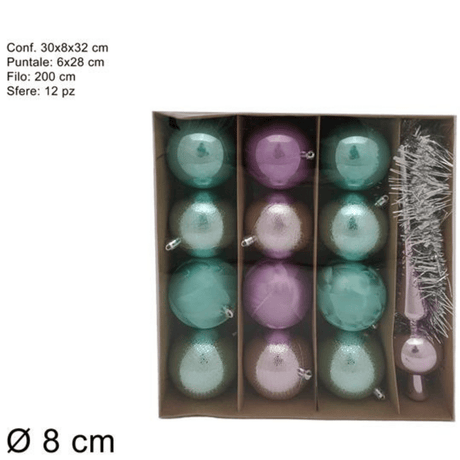Μπάλα Ρόζ/Τυρκουάζ 8cm 12τμχ Γυάλινη Χριστουγεννιάτικη Welkhome