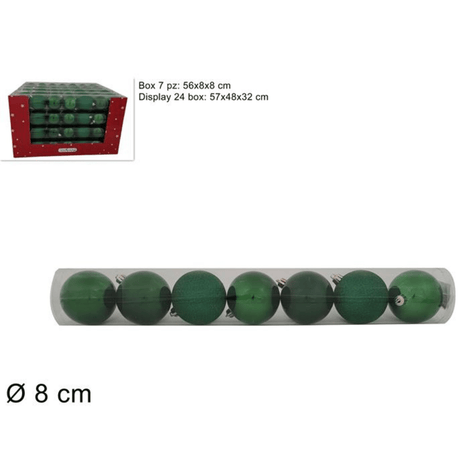 Μπάλα Πράσινη 8cm 7τμχ. Πλαστική Χριστουγεννιάτικη Welkhome