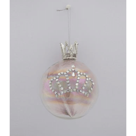 Μπάλα Ροζ 10cm Γυάλινη με Κορόνα Χριστουγεννιάτικη Welkhome
