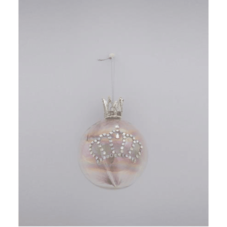 Μπάλα Ροζ 8cm Γυάλινη με Κορόνα Χριστουγεννιάτικη Welkhome