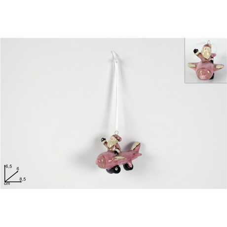 Αεροπλανάκι με Άγιο Βασίλη Κρεμαστό Στολίδι Κεραμικό Ροζ 6.5x6x8.5cm Welkhome