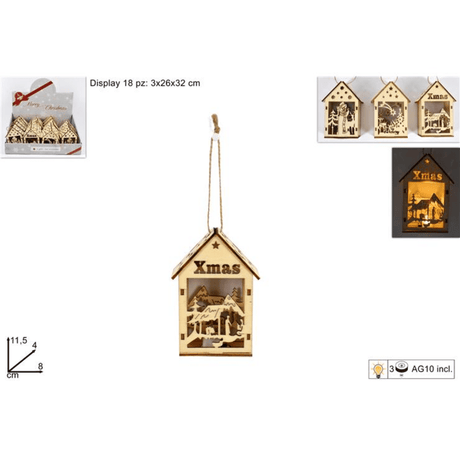 Σπιτάκι Ξύλινο Κρεμαστό Φωτιζόμενο 11.5x4x8cm Welkhome