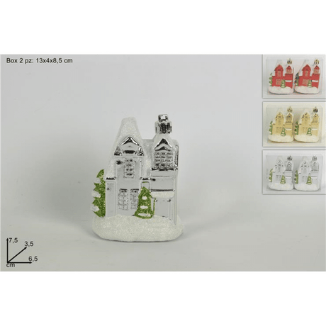Σπιτάκι Πλαστικό Σετ 2τμχ. Κρεμαστό Στολίδι 7.5x3.5x6.5cm Χριστουγεννιάτικο Welkhome