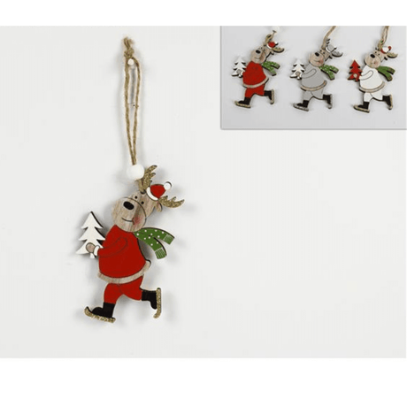 Τάρανδος Σετ 2Τεμ. Κρεμαστό Ξύλινο Στολίδι Χριστουγεννιάτικο 12x1.5x15cm Welkhome