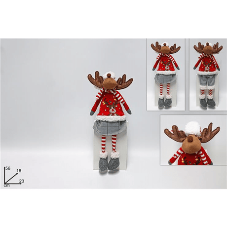 Τάρανδος Λούτρινος Διακοσμητικός Καθιστός Χρώμα Κόκκινο 56cm Welkhome