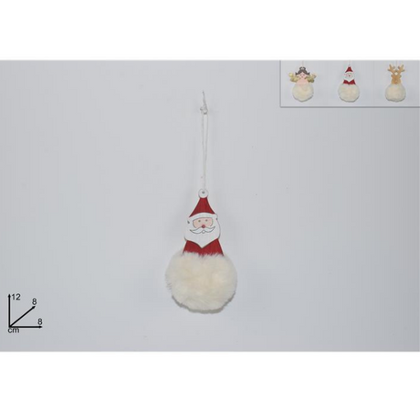 Στολίδι Κρεμαστό Ξύλινο με Γούνινη Μπάλα 12cm Welkhome