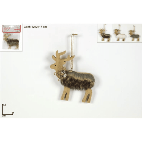 Τάρανδος Κρεμαστό Στολίδι Ξύλινο με Γούνα 12cm Welkhome